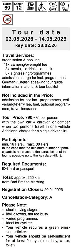 Travelling from Bad Ems the Spa town often frequented by Prussian and European nobility, the tour quickly reaches the federal state of Hesse. Prior to the German Empire the Lahn valley was home to several dukedoms, whose rulers made it into several royal houses that still serve today.